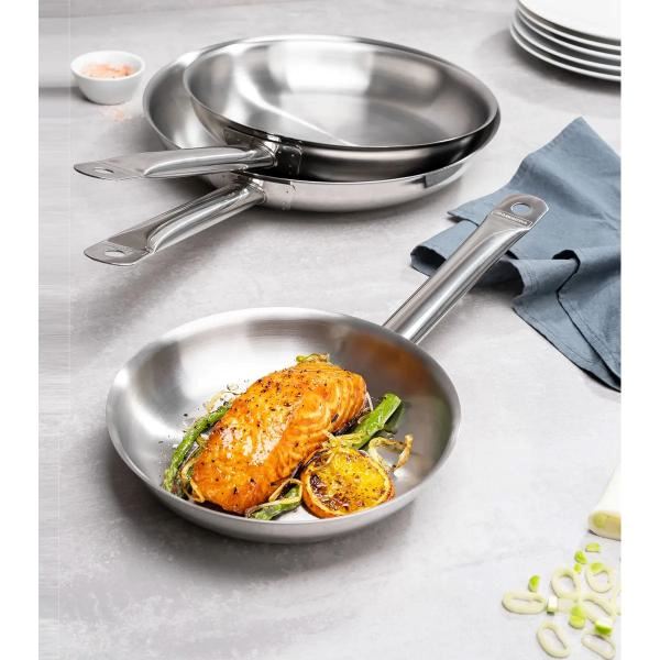 Está hecho de acero inoxidable con fondo triple (acero inoxidable + aluminio + acero inoxidable), distribuyendo el calor uniformemente y haciendo la cocción de los alimentos mucho más rápida.
